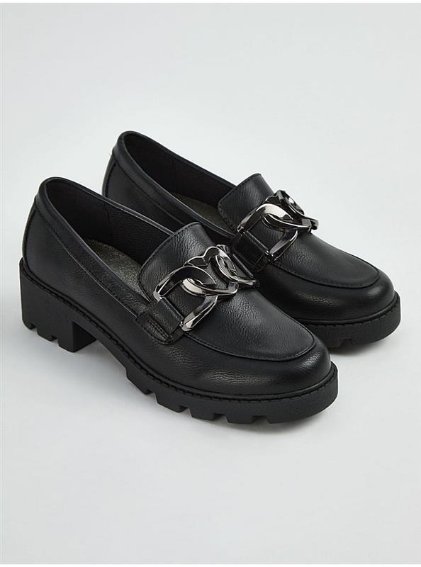 Footwear must be plain black shoes that are polishable and have no visible logos, such as the images below.